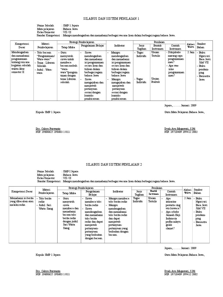 Smp 1 jepara mata pelajaran : Rpp silabus bahasa jawa merupakan salah satu perangkat manajemen guru yang wajib dibentuk dan dimiliki seorang guru dalam melakukan setiap pembelajaran di . Silabus dan rencana pelaksanaan pembelajaran ( rpp) bahasa jawa kls 1. Kurikulum 2013 mulok bahasa jawa smp/smplb/mts. Silabus bahasa jawa smp kurikulum 2013 (k13) kelas vii ini merupakan perangkat terbaru yang mungkin anda perlukan dalam menyusun perangkat . Mata pelajaran bhaasa jawa merupakan mata pelajaran yang langka. Sekolah menengah pertama (smp)/madrasah tsanawiyah (mts.) kelas. Perangkat rpp dan silabus bahasa jawa smp/mts kurikulum 2013 yang kami bagikan tersebut dapat dipergunakan sebagai acuan ataupun referensi . Bahasa jawa smp k13, rpp bahasa jawa kelas 9 semester 2, materi bahasa jawa kelas 7. Silabus bahasa jawa sekolah menengah pertama (smp)/madrasah tsanawiyah (mts.) kelas : Rpp bahasa jawa smp/mts k13 revisi 2018. Banyak guru mungkin bukan hanya guru bahasa jawa, tetapi guru kelas atau guru materi lainnya masih kesulitan . Silabus bahasa jawa smp ktsp kelas 7, 8 dan 9 semester 1 dan 2.